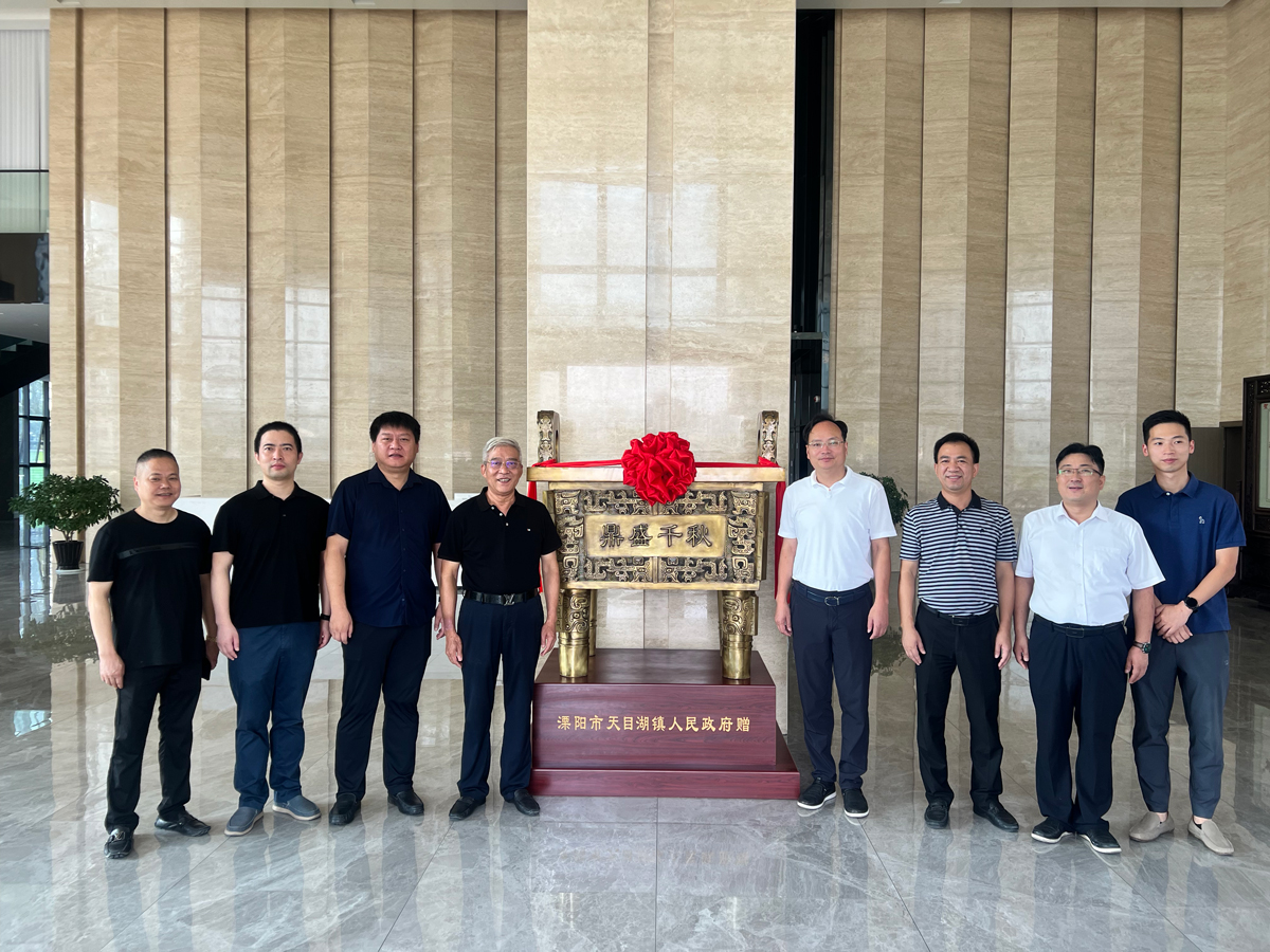 今天上午,天目湖鎮(zhèn)黨委書記、天目湖旅游度假區(qū)管委會主任周文光等領(lǐng)導(dǎo)一行,到我司進行走訪調(diào)研。周書記對我司近段時間的工作,以及工作中遇到的問題進行了全面了解。同時代表鎮(zhèn)政府向公司送來關(guān)心和慰問,贈送了寓意為“鼎盛千秋、龍騰四!钡膶毝。